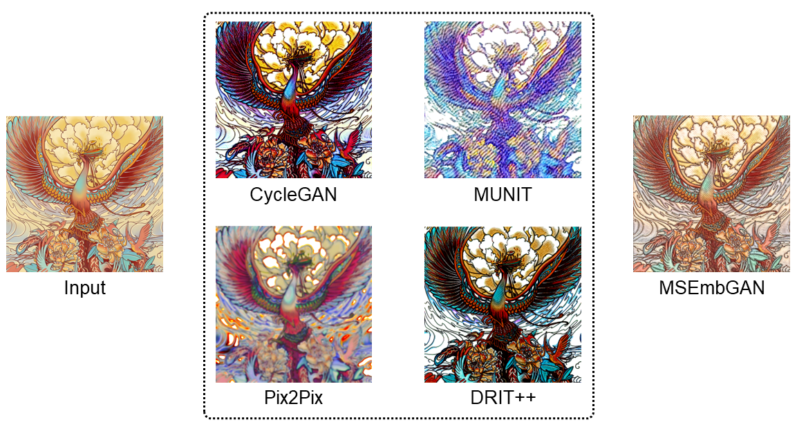Convolutional neural networks (CNNs) are widely used for embroidery feature synthesis from images. However, they are still unable to predict diverse stitch types, which makes it difficult for the CNNs to effectively extract stitch features. In this paper, we propose a multi-stitch embroidery generative adversarial network (MSEmbGAN) that uses a region-aware texture generation sub-network to predict diverse embroidery features from images. To the best of our knowledge, our work is the first CNN-based generative adversarial network to succeed in this task. Our region-aware texture generation sub-network detects multiple regions in the input image using a stitch classifier and generates a stitch texture for each region based on its shape features. We also propose a structure generation network with a structural feature extractor, which helps achieve full image structural consistency by requiring the shape and color attributes of the output to closely resemble the input image. Because of the current lack of labeled embroidery image datasets, we provide a new multi-stitch embroidery dataset that is annotated with three single-stitch types and one multi-stitch type. Our dataset, which includes more than 30K high-quality multi-stitch embroidery images, more than 13K aligned content-embroidered images, and more than 17K unaligned images, is currently the largest embroidery dataset accessible, as far as we know. Quantitative and qualitative experimental results, including a qualitative user study, show that our MSEmbGAN outperforms current state-of-the-art embroidery synthesis and style-transfer methods on all evaluation indicators.