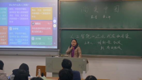 11月25日晚上7点,纺大思政通识课《尚美中国》第六讲于阳光校区崇志楼220正式开讲。数学与计算机学院胡新荣教授与彭涛副教授以“人工智能的过去、现在与未来”为题,回顾人工智能的发展历程,并展望其未来在经济、科技、国防各领域发展中的变革先锋作用,激励同学们积极拥抱智能世界,努力建设美丽中国。