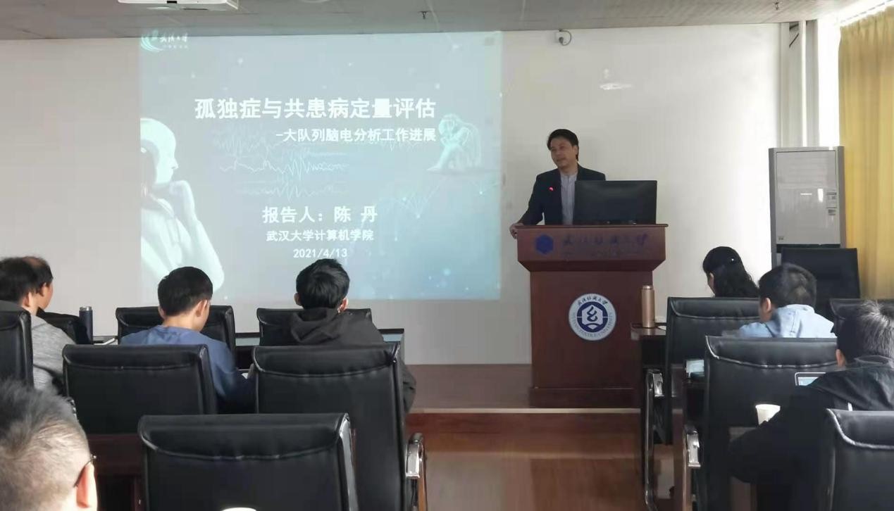 陈丹教授报告的题目为《孤独症与共患病定量评估》,主要介绍了关于大队列脑电数据智能化分析在孤独症与共患病定量评估的研究。他依据脑电大数据,研究了同步度量、特征构建、模式认知三个层面的核心科学问题,发展“从一维到高维”脑电大数据高效分析与计算方法,介绍了其在推动典型认知障碍从“主观定性”进入到“量化精准”在线分析的工作,并对自闭症谱系障碍、抑郁症、睡眠障碍、癫痫等的高效监控、高精度识别与分类的研究现状作了详细报告。他的研究引起了在座教授和学生的热烈讨论。