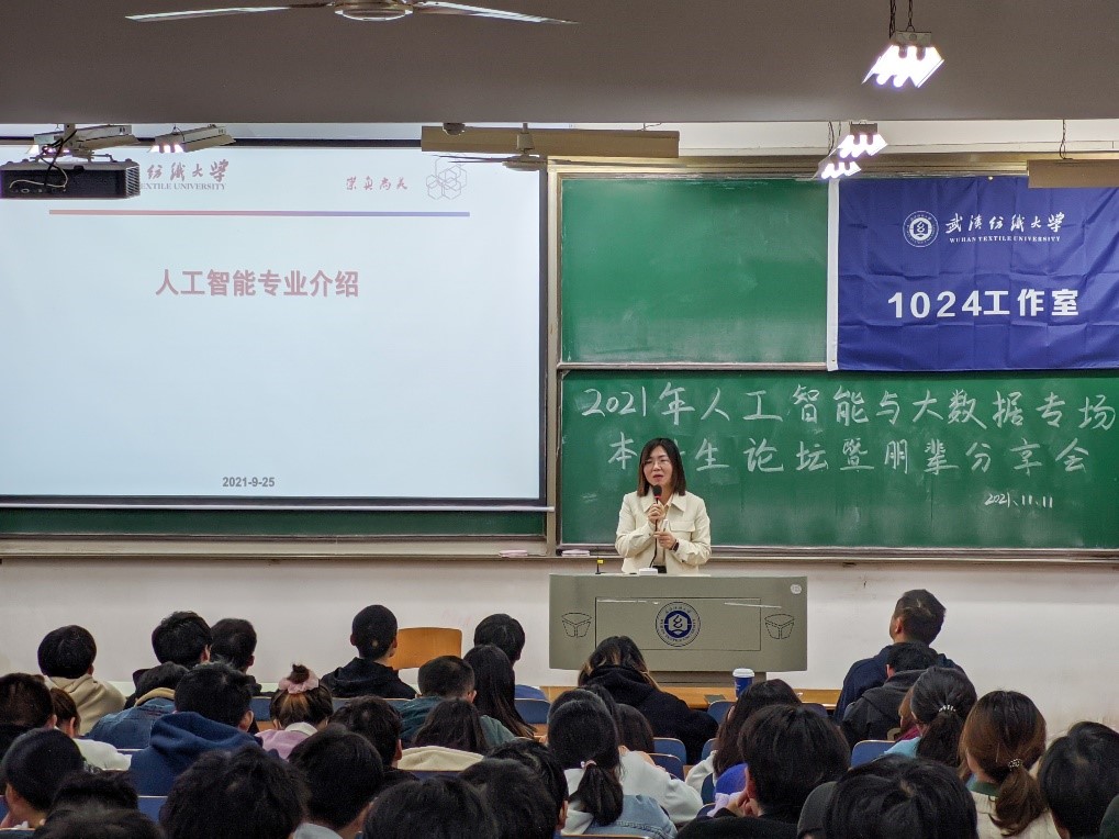 李丽对四位同学的分享和同学们参与论坛的热情与态度给予了充分肯定。并以专业的视角向在座同学们分析了人工智能专业的背景与定位,她强调人工智能已上升至国家战略高度,发展人工智能势在必行,人工智能专业的设立可以推动多学科交叉融合,为传统学科的进一步发展开拓新的思路。她也为同学们讲解了人工智能专业人才培养方案与定位,旨在提升大家的专业自信度,虽然人工智能是学校新开设的专业,但在社会大环境与学校和学院的大力支持下一定会蓬勃发展,未来可期。