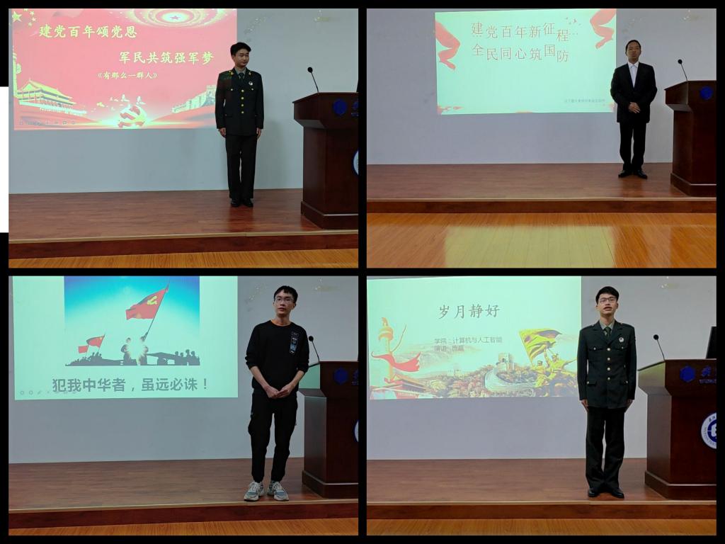 为不断加强青年学生的国防意识、国防素养和国防情怀,牢固树立总体国家安全观,营造关心国防、献身国防的浓厚氛围,激发大学生的家国情怀,增强大学生的爱国意识。11月11日晚18:00和11月30日晚18:00分别由学院在崇真楼(南楼)A4003和由学校于崇志楼T-201室如期举行初赛和决赛。学院党委副书记涂耀威、辅导员廖龙、谢瑞清和全体参赛选手参加了此次活动。