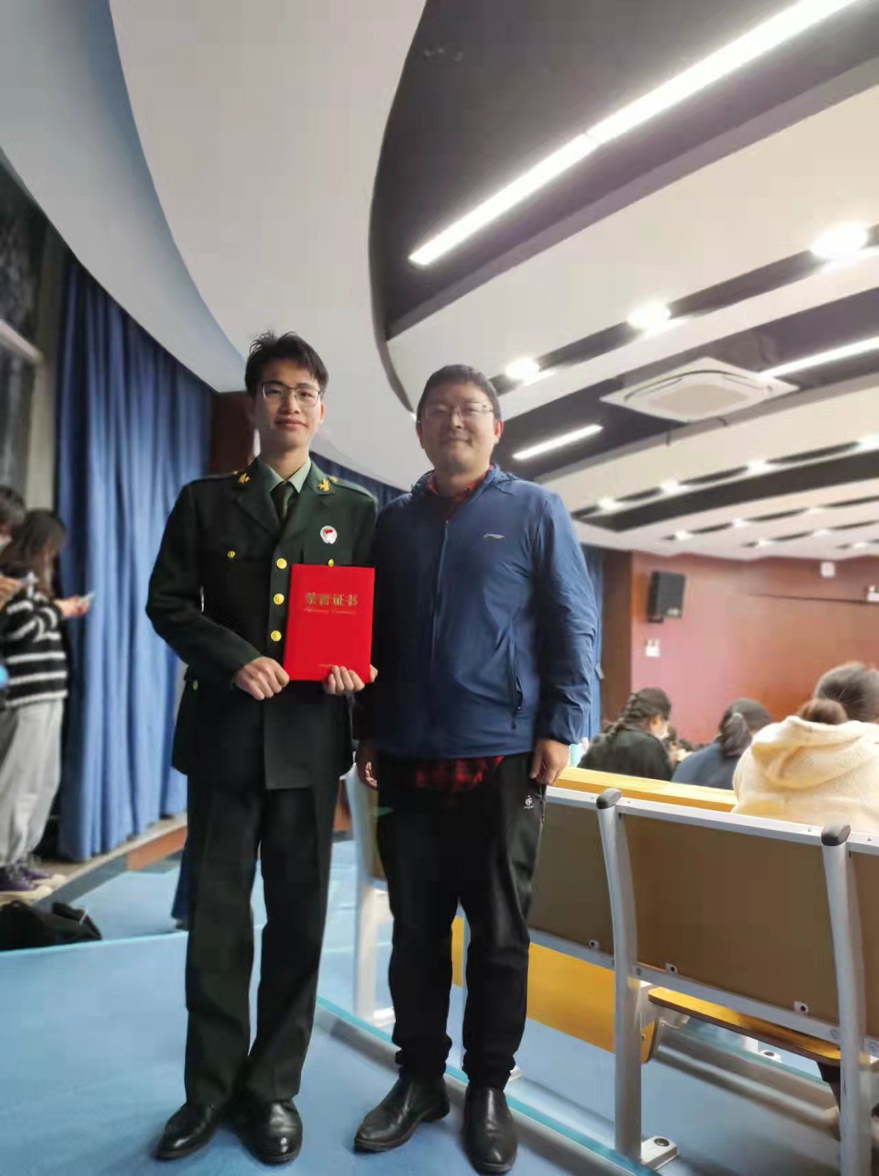 11月30日晚18:00,在决赛中,庞磊同学以“岁月静好”为题,向我们讲述了中国军人赴汤蹈火,冲锋陷阵的英姿。说到“哪有什么岁月静好,只是有人在替你负重前行”。“中国军人总是在国家危难之际身先士卒,而待到危险退去后又默默的回到山林之中日复一日的训练。他们不喊累,不说苦,因为他们是中国军人!”激昂慷慨的现场气氛再次被点燃,迎来阵阵掌声。庞磊同学还分享了他入伍的感受与体会,他慷慨激昂,振奋人心,让我们体会到了中国军人的独特魅力!