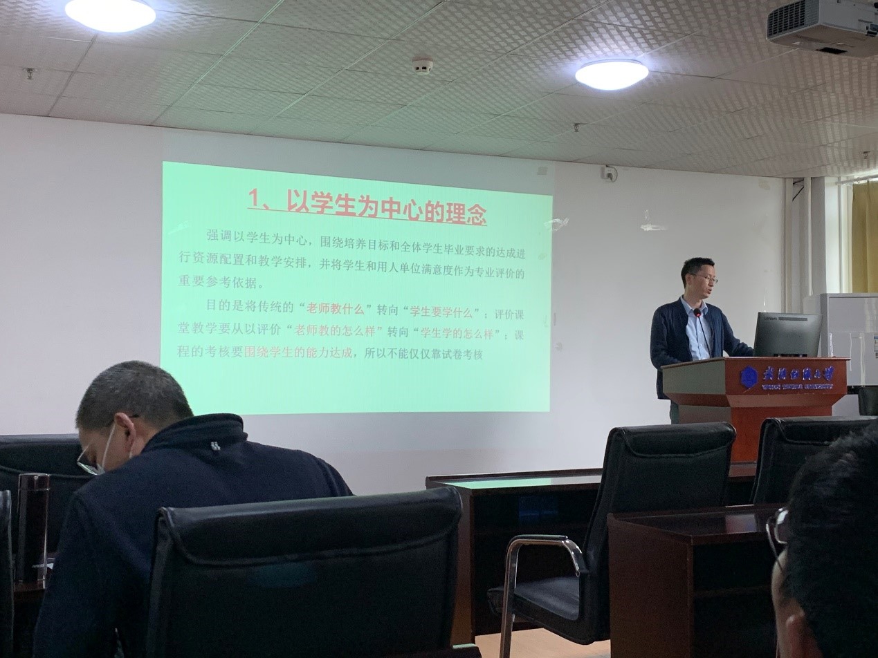 为推进工程教育认证工作的开展,学院高度重视,组织成立专业认证工作团队,学院党政班子亲自指导,做好顶层设计,制定工作计划。4月22日下午,计算机科学与技术系主任、院长助理彭涛副教授向全院教师做了《以学生为中心的课程教学》报告。