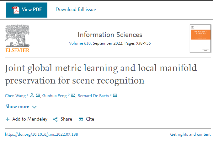 近日,我校开云kaiyun体育官方网站青年教师王晨博士在场景图像识别方面取得了重要的研究进展。相关成果以“Joint global metric learning and local manifold preservation for scene recognition”为题发表在计算机科学领域一区top期刊《Information Sciences》上。该论文的第一单位为武汉纺织大学,第一作者为武汉纺织大学开云kaiyun体育官方网站王晨博士。