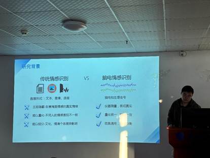陈宇同学分享的主题是“Research on EEG Emotion Recognition Based on Deep Learning”,他强调在当前快节奏、高压力的生活环境中,人们很容易长期处于心理亚健康状态,这可能导致一些不易察觉的心理疾病。为了更好地理解和应对这一问题,基于客观信号的脑电情绪识别研究显得尤为重要。基于深度学习的脑电情绪识别研究不仅仅是技术性的探索,它还涵盖了从数据集的选择、数据采集设备的应用、实验的整体设计流程,到数据的输入、预处理、可视化和特征提取等多个方面。我们有望更好地理解人类情绪,并在未来为心理健康问题的诊断和治疗提供新的视角和工具。