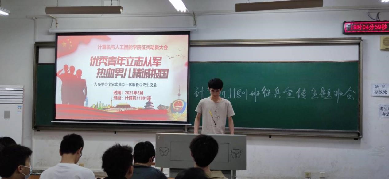 为深入推进国防教育,激励学院学生形成关心国防、热爱国防、建设国防、保卫国防的良好氛围,普及国防知识,提升学生的家国情怀,计算机与人工智能学院于5月5日晚开展了2021年开云kaiyun体育官方网站退伍士兵朋辈交流活动。此次活动由大数据11901班的敖伟和信科11902班的方才威两名退伍同学主讲。