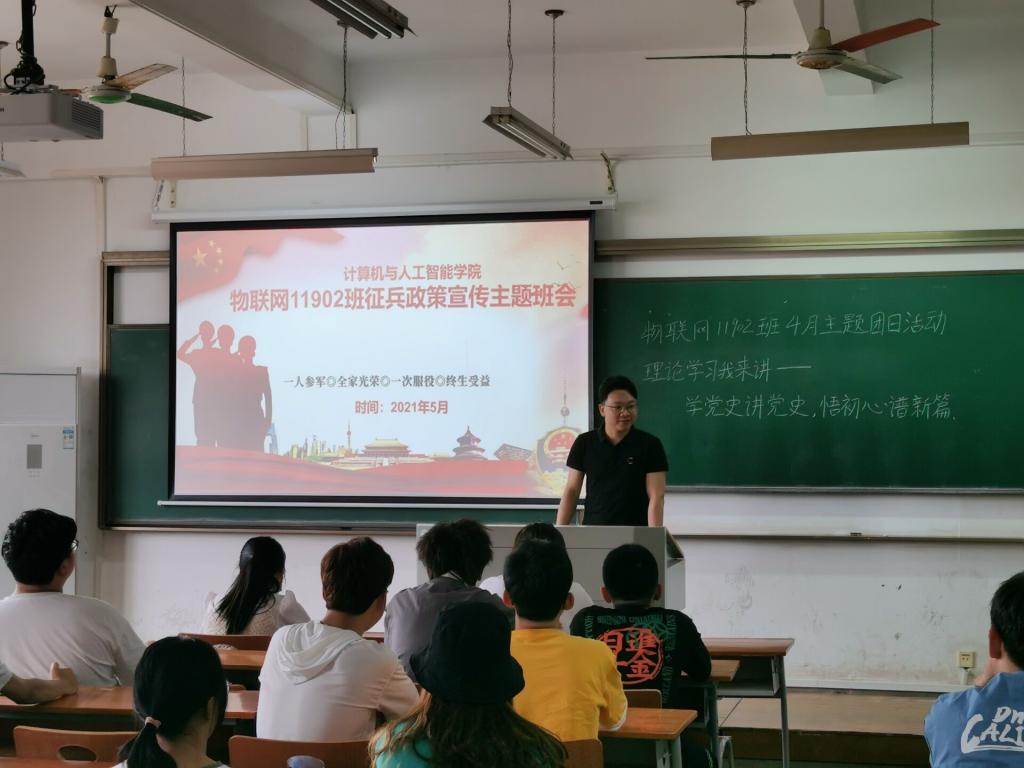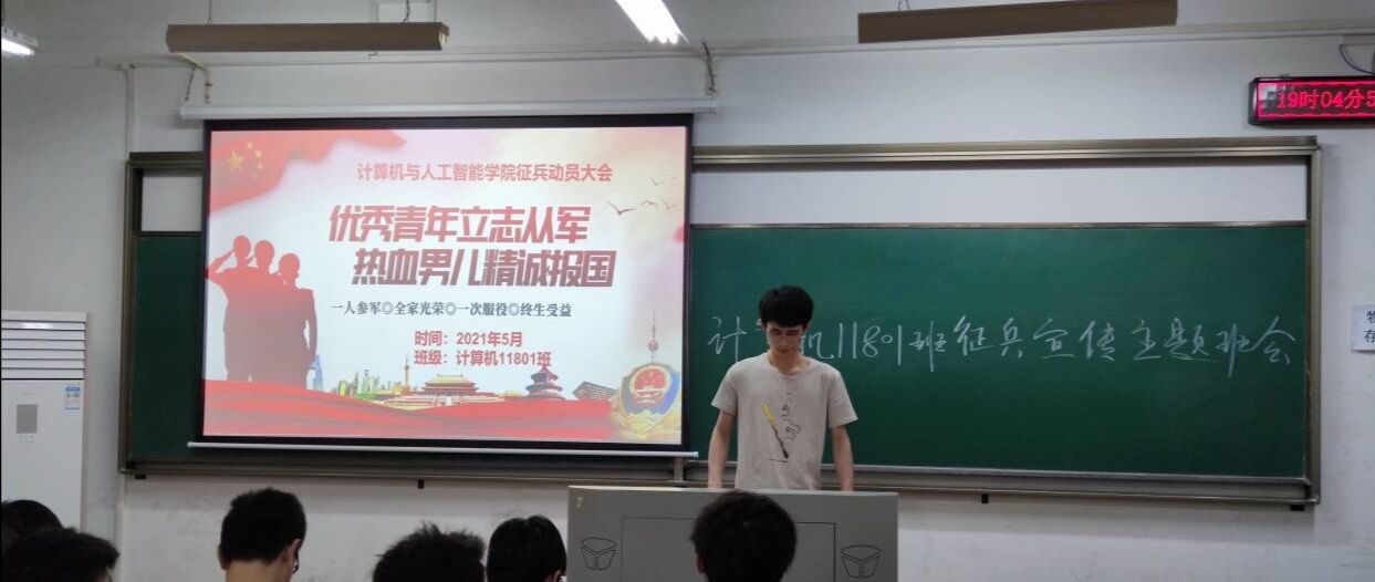 为响应国家号召参军入伍,把爱国之心化为报国之行,加强大学生国防教育,鼓励学生积极参军,5月5日晚,开云kaiyun体育官方网站各年级于崇志楼组织召开征兵政策宣传主题班会,全院学生参与此次主题班会。