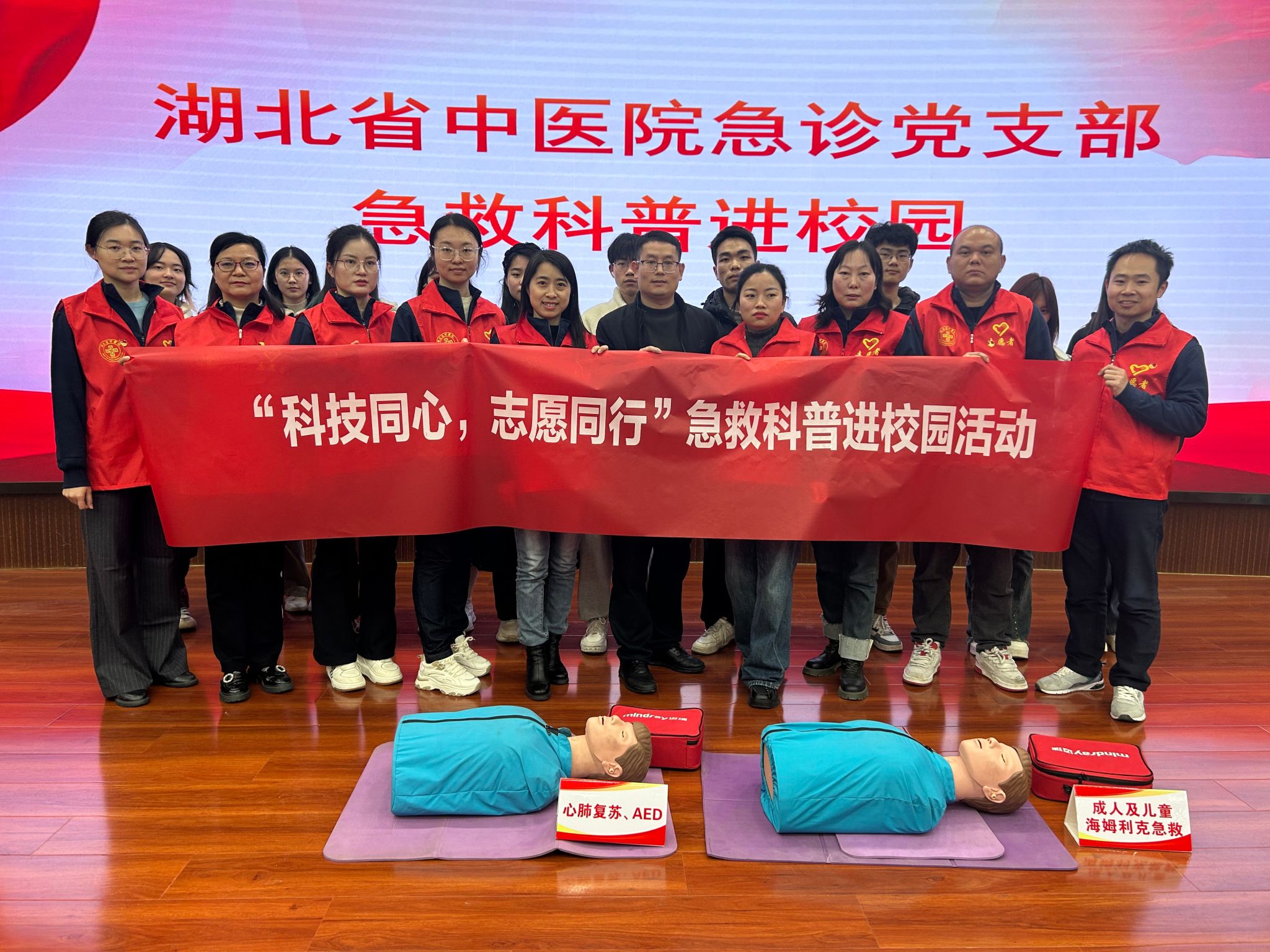 活动在湖北省中医院的宣传片播放中拉开帷幕,师生们对省中医院有了更直观且深入的了解。随后,来自湖北省中医院的12名急救培训专家依次登场,带来精彩纷呈的宣讲与培训内容。内科医生包婷婷凭借丰富的临床经验,通过生动的案例和专业的知识讲解,让师生们清晰地掌握了急性心梗的识别方法以及在紧急时刻的正确急救措施,这对于在校园中及时应对突发心脏疾病至关重要。护理专家陈红则聚焦于心理健康领域,深入剖析抑郁症的识别与预防要点,帮助师生们更好地关注自身和他人的心理健康状态,增强心理调适能力。