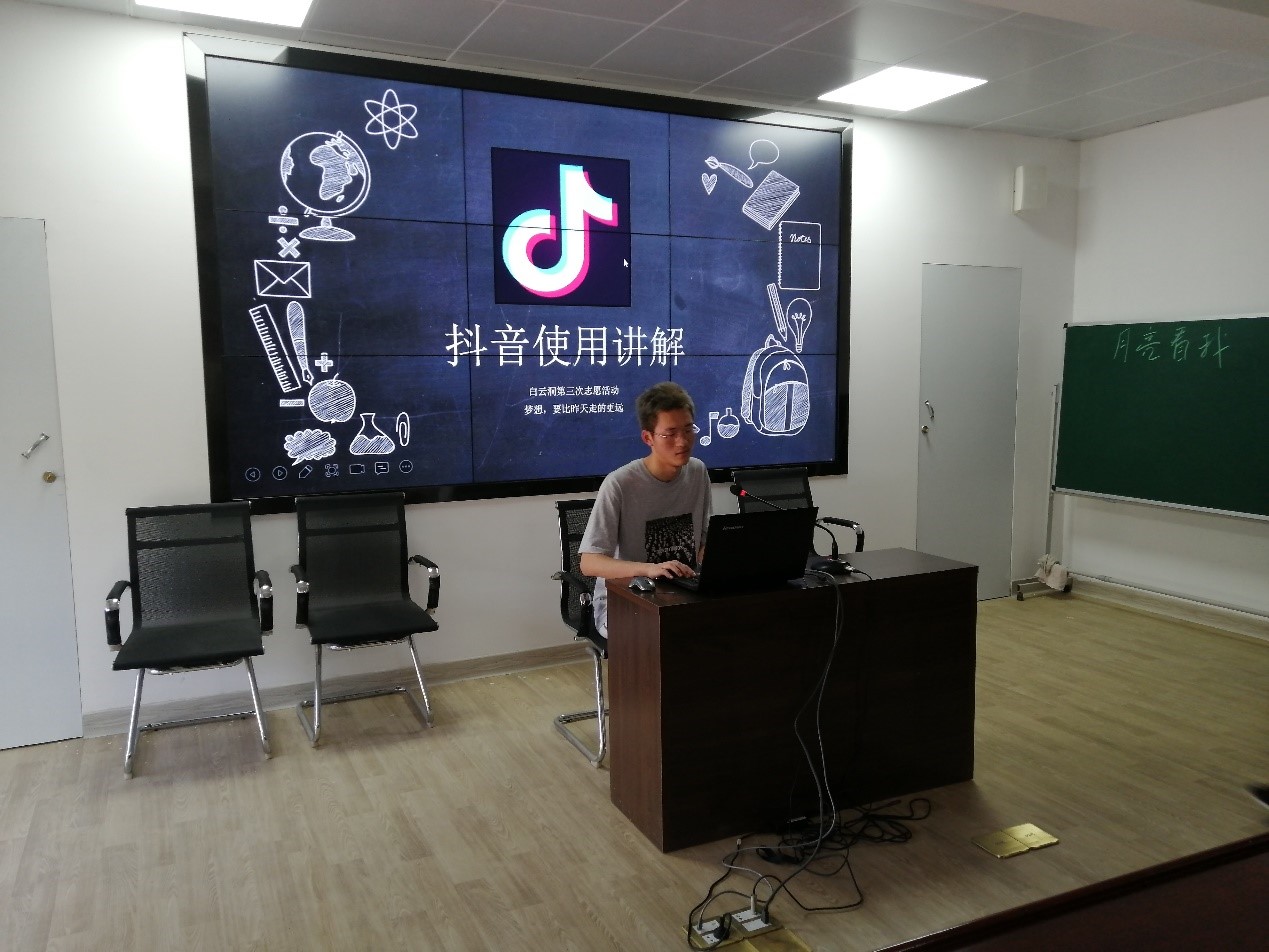主讲人向昶从下载、注册、完善个人信息、添加好友到拍摄发布视频,按步骤耐心进行讲解,其他人分散站在老人们身边,细心解决老人们在操作过程中遇到的问题。