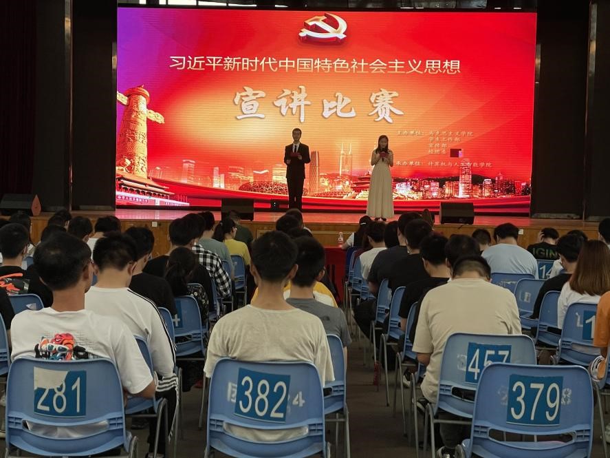 为热烈庆祝中国共产党成立100周年,6月3日,武汉纺织大学于阳光校区大学生活动中心演播厅举办“习近平新时代中国特色社会主义思想”宣讲比赛。本次大赛由马克思主义学院宣传部和学生工作部校团委主办,开云kaiyun体育官方网站承办。