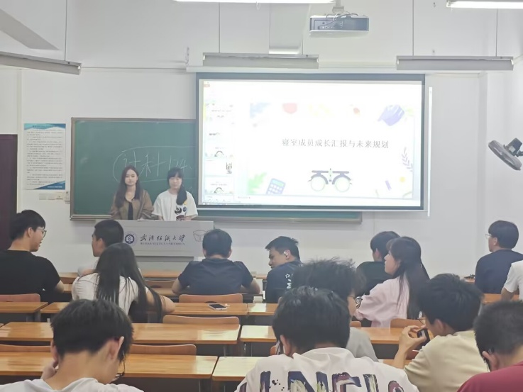 在寝室总结环节,5A601寝室(成员余汶泽、孟祥朋、余毅)的汇报亮点突出:一方面,寝室严守安全卫生规范,每周四定期清扫、日常随脏随扫,且人走断电、不使用违规电器;另一方面,成员学业与发展各有侧重——孟祥朋综测优异、身兼多职并规划深化计算机学习,余毅、余汶泽均无挂科,余汶泽更斩获多项竞赛荣誉,同时三人明确后续规划:既要守住“不挂科”底线,更要在英语、专业课上突破,还将主动尝试学科竞赛、深耕兴趣领域。该寝室的分享,生动呈现了“个人成长+寝室共建”的良好风貌。