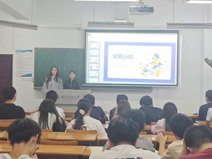 首先,班长以详实数据总结班级学习情况:整体水平中等偏上,多数学生绩点在2.5-4.0,部分达4.0-4.5;但存在短板,班级部分同学出现挂科现象,成绩呈“中间多、两头少”分布,有低绩点学生及成绩断层风险,高分段数量也偏少。