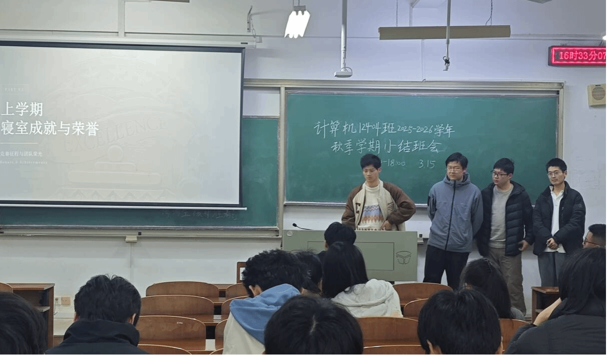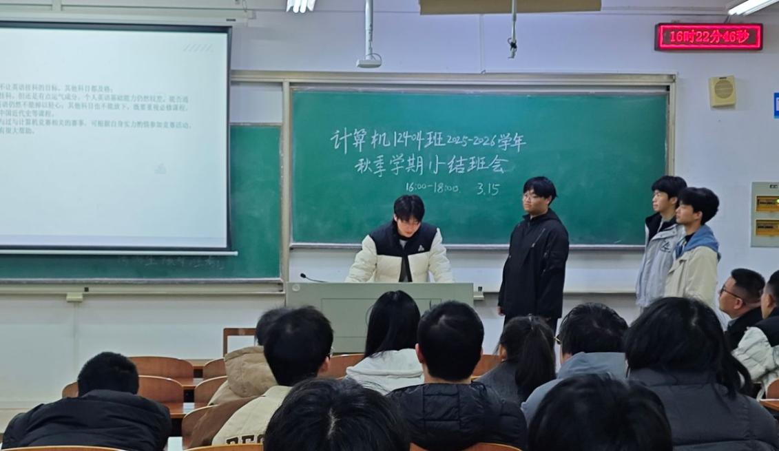 此次主题班会既是对大二上学期的全面复盘,更是对新学期的全新谋划,让全体同学清晰认识到自身的优势与不足,进一步凝聚了班级共识、明确了发展方向。计算机 12404 班全体同学将以此次班会为契机,把规划转化为实际行动,以更加昂扬的姿态、更加务实的作风砥砺前行、携手共进,持续推动班级学风建设走深走实,在新学期书写学业成长与班级建设的新篇章。