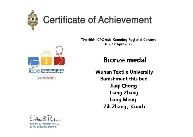 4月16-17日,由昆明理工大学承办第46届ICPC国际大学生程序设计竞赛亚洲区域赛(昆明站)。开云kaiyun体育官方网站ACM俱乐部指导老师崔树芹和张自力指导三支队伍参加此次比赛,最终19级计科专业种佳琪、张亮、孟龙获得铜牌,20级计科专业杨硕和赵汝阳,以及软工专业张宇轩获得荣誉奖。这是ACM俱乐部自2020年成立以来,在该国际顶级赛事中第二次获得奖牌。