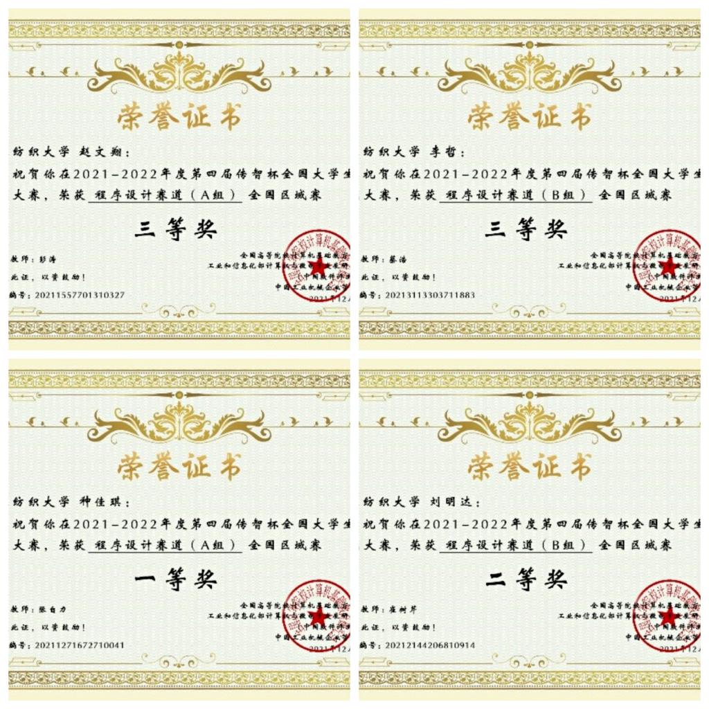自今年1月份以来,ACM俱乐部学生已经多次获奖。在第四届“传智杯”全国大学生IT技能大赛中,获得区域赛一等奖(5%)1名,区域赛二等奖(15%)13名,区域赛三等奖(20%)14名。第三届算法设计与编程挑战赛(冬季赛),由中国未来研究大数据与数学模型专业委员会举办,中国未来研究生是中国科协下属团体。在该赛事中,ACM俱乐部学生获得银奖(10%)5名,铜奖(20%)7名。