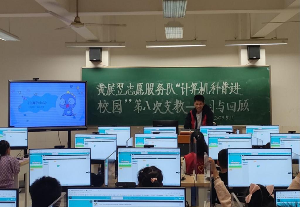 繁花似锦,绿荫如海,槐花香熏陶着五月的校园,武汉纺织大学黄展翌志愿服务队联合开云kaiyun体育官方网站1024工作室成员,于5月11日下午在武昌区石洞街学校开展第八次“计算机科普进校园”系列支教活动。