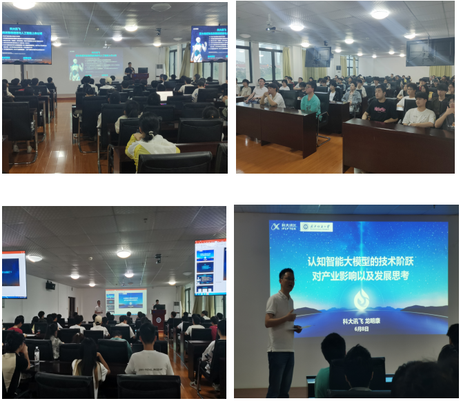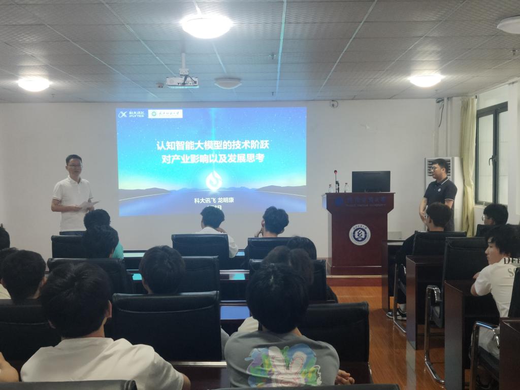 最后,龙明康向同学们讲解了人工智能领域ChatGPT的主要原理以及ChatGPT火爆的原因,引导同学们正确认识“机器掌握和运用人类语言和知识,开启机器自然语言交互式学习的“类人”的新范式”,并借此向同学们描述了讯飞研究工程与应用的进展,鼓励同学们在人工智能领域深耕细作,让人工智能更加准确可靠、安全可控,用人工智能建设美好世界。