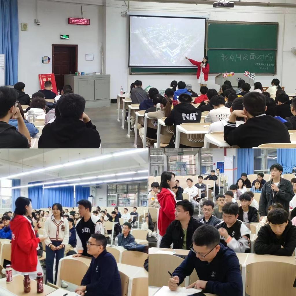 随后,徐霞以金山集团的宣传视频开启了本次讲座,详细介绍了武汉金山软件集团的发展历程、企业文化及招聘需求,让在场的同学们对这家行业领军企业有了更加全面的了解。并就考研还是就业的问题与同学进行了互动,她表示无论是就业还是考研,企业都更期望学生从个人擅长和自己热爱的方面着手,找到适合自己的道路,而不是盲目从众。她还介绍了金山集团董事长雷军和金山集团CEO邹涛的职业故事以及他们与金山发展的经历,激励同学们积极丰富自己的实操能力。在讲座的交流互动环节,徐霞解答了大家在职业规划、求职技巧等方面的问题,鼓励同学们要勇于追求梦想,勇攀事业高峰,面对激烈的职场竞争,大三学生应充分利用在校时间,提升自身综合素质,为未来职业生涯做好充分准备。