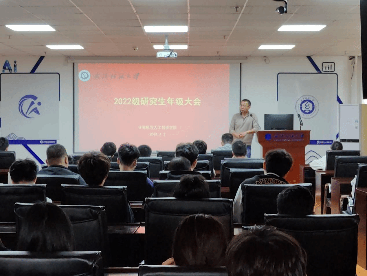 彭涛院长总结研究生现阶段的学习困难和就业形势,对研一、研二学生提出认清形势、早做规划、抓紧时间等相关要求。