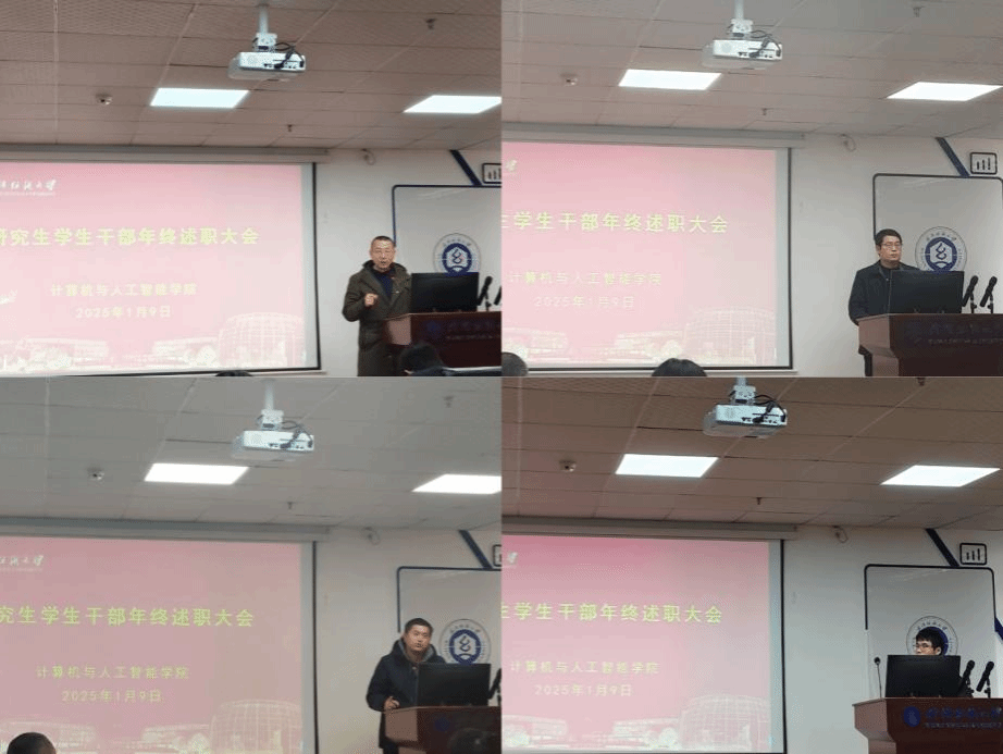 随后,研究生党支部秘书助理苗佳哲、研究生会学生干部主席桂凌、纪律部部长李珠婷、学习部部长成子惠、宣传部干事魏逸飞、文体部副部饶忠睿、秘书部部长贺昕宇、黄展翌志愿服务队队长冯润泽、三位年级长2024级范梦琳、2023级吴枫、2022级史盛源依次进行述职,汇报了2024年的工作情况,个人的收获以及未来展望等。