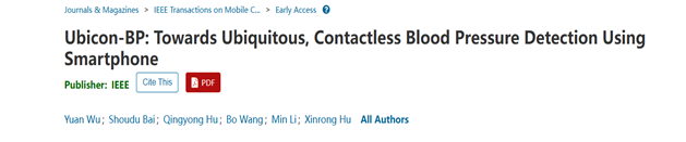 在Ubicon-BP: Towards Ubiquitous, Contactless Blood Pressure Detection Using Smartphone一文中,吴渊博士提出了一种基于智能手机超声波的泛在血压检测方法,利用手机扬声器发出超声波感知心跳信号,利用手机摄像头感知手掌脉搏,将提取的心跳和脉搏信号建模,用于实时检测血压,为智慧医疗的应用提供了理论支撑。