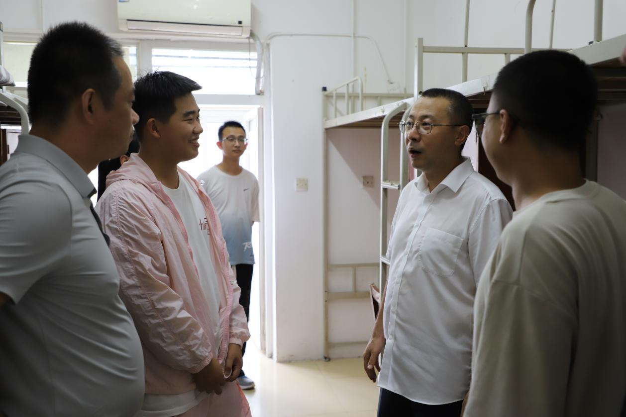 为进一步了解新生入住情况,院长胡新荣,院党委书记晏伟带队走访新生宿舍。每到一间宿舍,领导们都仔细查看住宿环境,与新生面对面交流,询问他们的适应情况,叮嘱新生尽快调整状态、融入集体,鼓励大家珍惜学习机会,在计算机领域深耕细作,未来为国家发展和社会进步贡献力量。