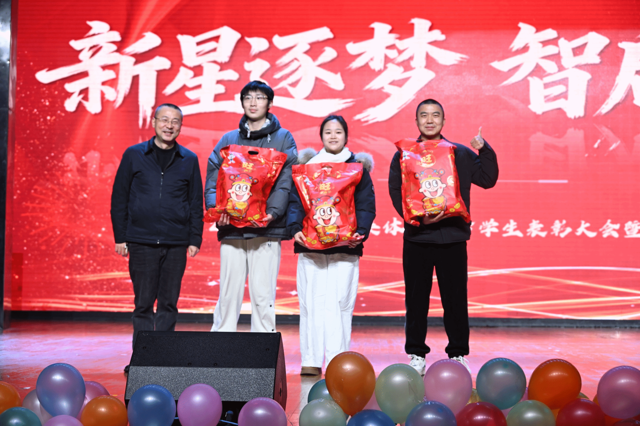 表彰大会落下帷幕后,以“新星逐梦·智启新元”为主题的新年晚会,在杨冠宇、彭佳豪、韩萱怡、杨欣怡四位学生主持人的巧妙串联下正式启幕。晚会精心设置“星火·初燃”“征途·共赴”“破晓·智现”“星河·同辉”四个篇章,穿插趣味互动抽奖环节,歌舞、小品、器乐、朗诵等各类节目轮番登台,全方位展现了计智学子的青春风采与多元才华。