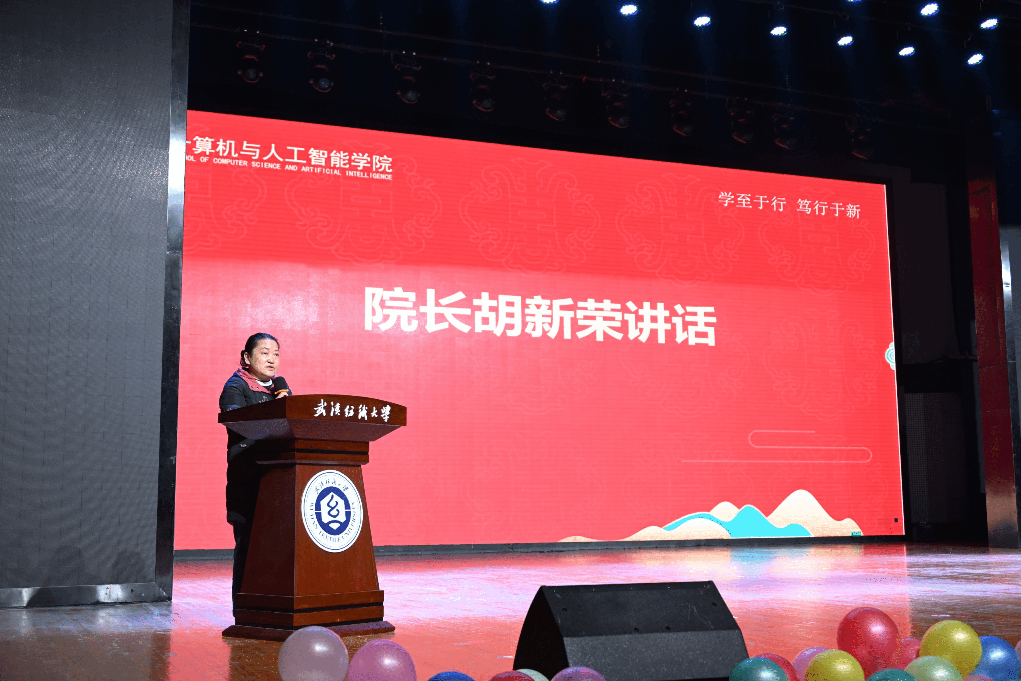 学院院长胡新荣教授以《计载耕耘结硕果,智启新程谱华章》为题讲话,对全院师生的辛勤付出予以高度肯定,并向全体同学提出四点希望:一是胸怀国之大者,做有理想的追光者;二是扎根纺大沃土,做勤学笃行的践行者;三是勇担学院使命,做敢闯会创的开拓者;四是锤炼卓越自我,做全面发展的新质人才。她勉励广大同学以优秀榜样为标杆,秉承“学至于行、笃行于新”的院训,发扬“美在纺大、学在计算机”的学风,在逐梦路上风雨兼程、砥砺前行,在青春的赛道上跑出属于自己的最好成绩!