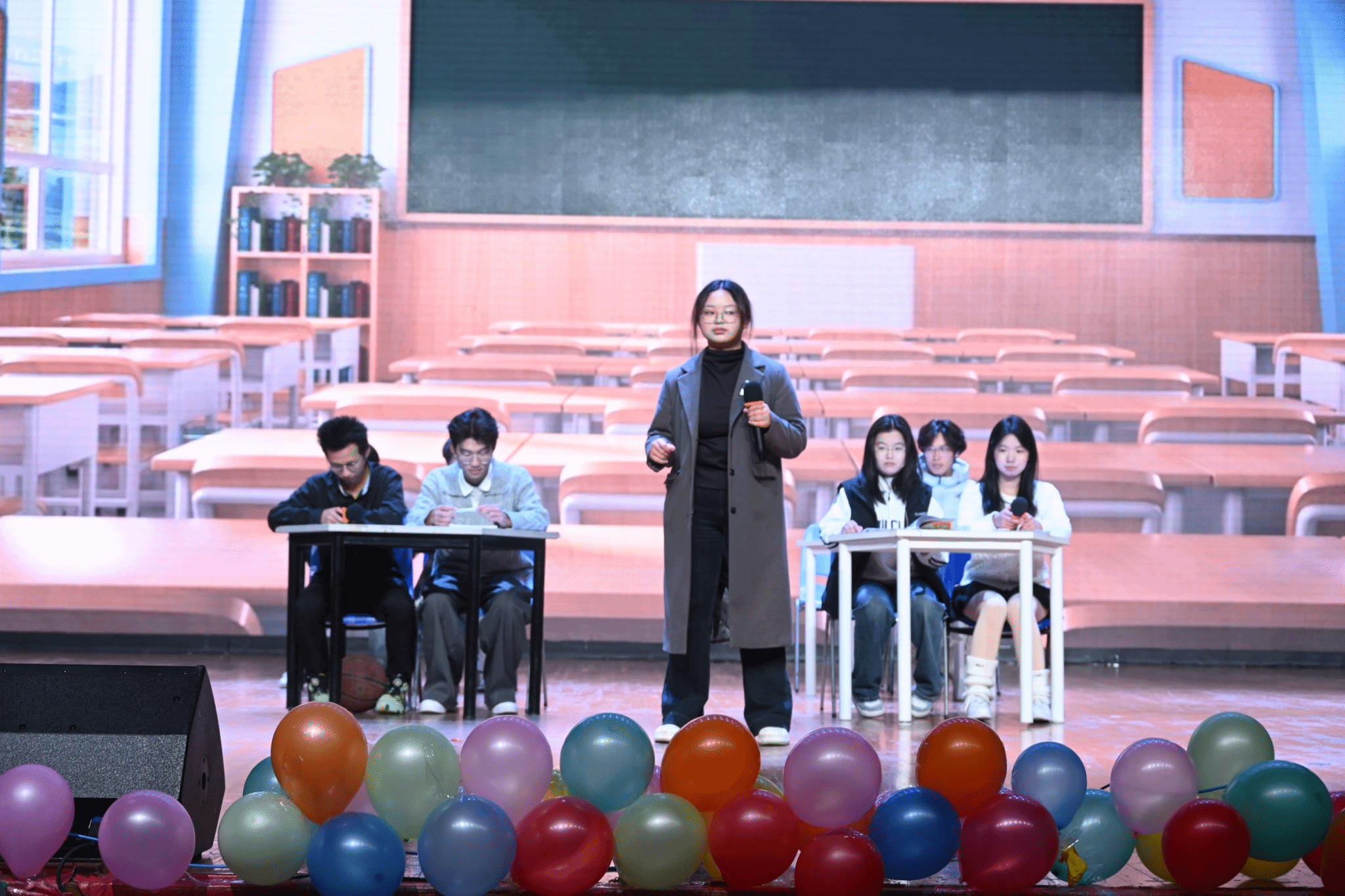 晚会抽奖环节瞬间将现场欢乐氛围推向顶峰,当装满学子姓名纸条的抽奖箱被缓缓送上舞台,台下立刻爆发出此起彼伏的欢呼与尖叫;晏伟、彭涛、向涛和刘军平受邀登台,轻轻搅动箱内纸条的每一个动作,都牢牢锁定全场目光,引发阵阵雀跃呐喊。随着幸运名字被逐一念出,中奖学子激动起身挥手致意,周围伙伴们的喝彩声、鼓掌声与欢呼声交织成欢快的浪潮,整个演播厅沉浸在热闹喜庆的氛围中。