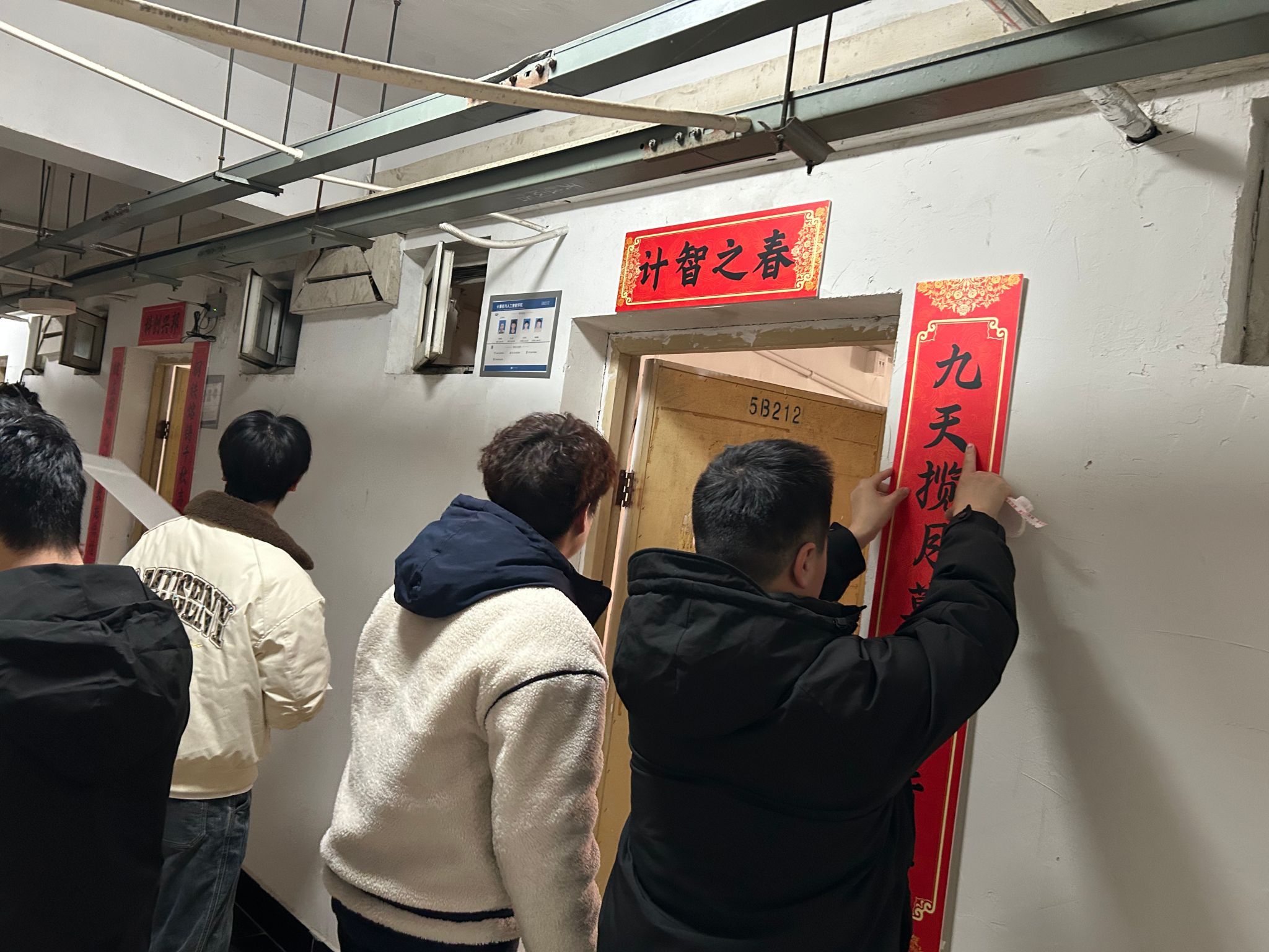 活动自启动以来,得到了学院各寝室同学的积极响应和热情参与。同学们以寝室为单位,围绕“红韵”主题,巧妙构思,将红色元素、励志名言与传统楹联相结合,充分发挥创意,精心装点“小家”。开云kaiyun体育官方网站党委书记晏伟、副书记向涛,在活动中亲自为寝室张贴对联,对同学们表达新春的祝福!