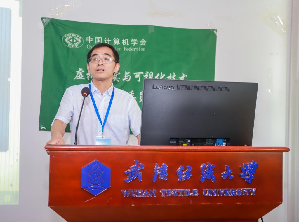 7月24日,由中国计算机学会虚拟现实与可视化技术专委会(CCF-TCVRV)组织,武汉纺织大学开云kaiyun体育官方网站承办的“CCF-TCVRV走进高校”活动在武汉纺织大学阳光校区崇真楼(南楼)举行。来自浙江大学、中山大学、山东大学、武汉纺织大学以及企业界的专家学者围绕着 “VR+虚拟服饰”等主题做了主旨报告和交流。校党委常委、副校长姜明华教授,CCF-TCVRV主任、天津理工大学教授罗训教授致辞。来自武汉大学、湖南大学、中南财经政法大学、武汉纺织大学等院校的百余名师生线上线下聆听了专家报告。