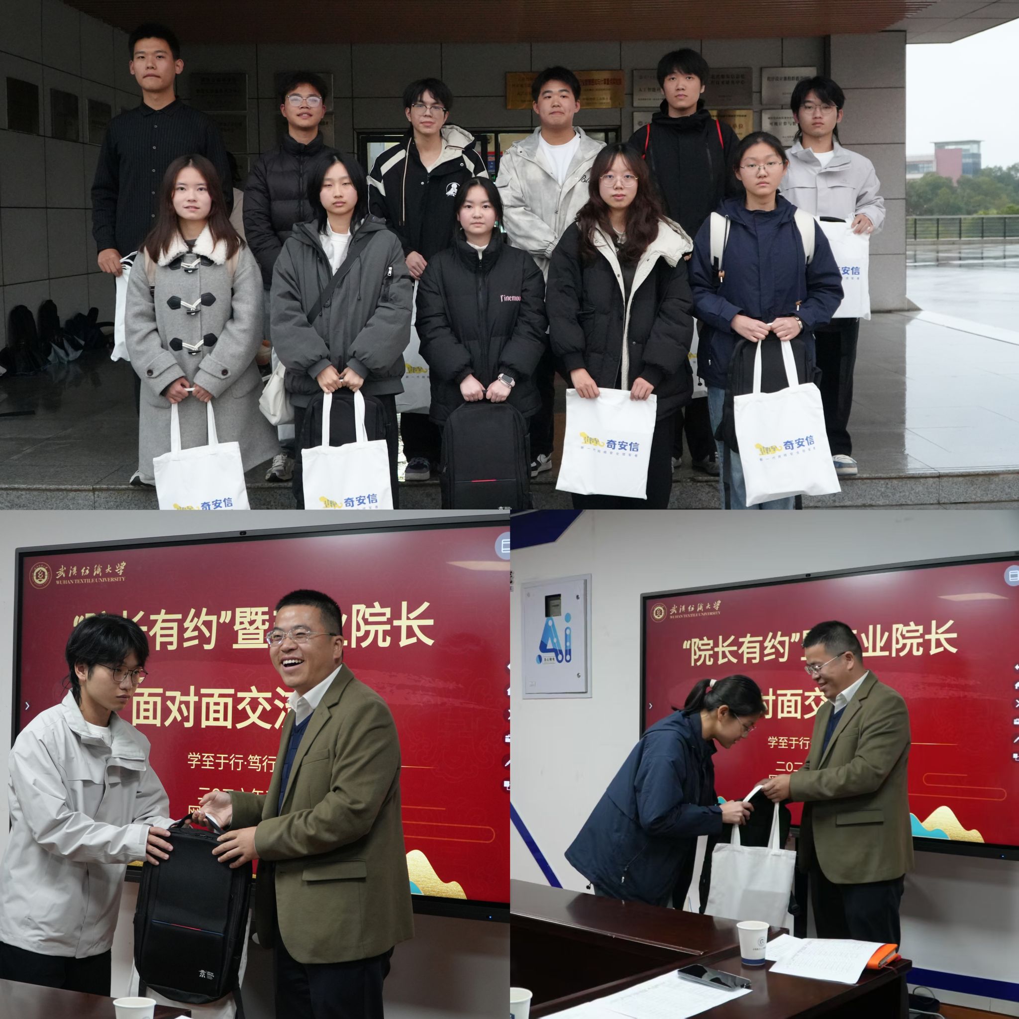 随后,刘进为同学们送上包含书包与运动手环的成长大礼包,寄语同学们“与书本为友、与运动为伴”,在专业学习中锤炼本领、在日常锻炼中强健体魄。在专题分享环节,刘进结合行业发展与校企合作实际,从三方面为同学们带来深度解读:一是奇安信集团将依托‌国家网络安全人才与创新基地,与武汉纺织大学网络空间安全学院深度合作,致力于培养科学家、企业家和卓越工程师等人才。二是以网络黑客攻击、智能设备安全等鲜活案例,生动阐释AI时代网络安全的重要性,强调“未来是AI的时代,更是AI安全的时代”。三是分析行业发展趋势,指出AI技术颠覆传统行业的同时,网络安全作为AI发展的核心保障,将随AI产业同步长期发展,鼓励同学们坚定专业选择,明确自身职业发展方向。