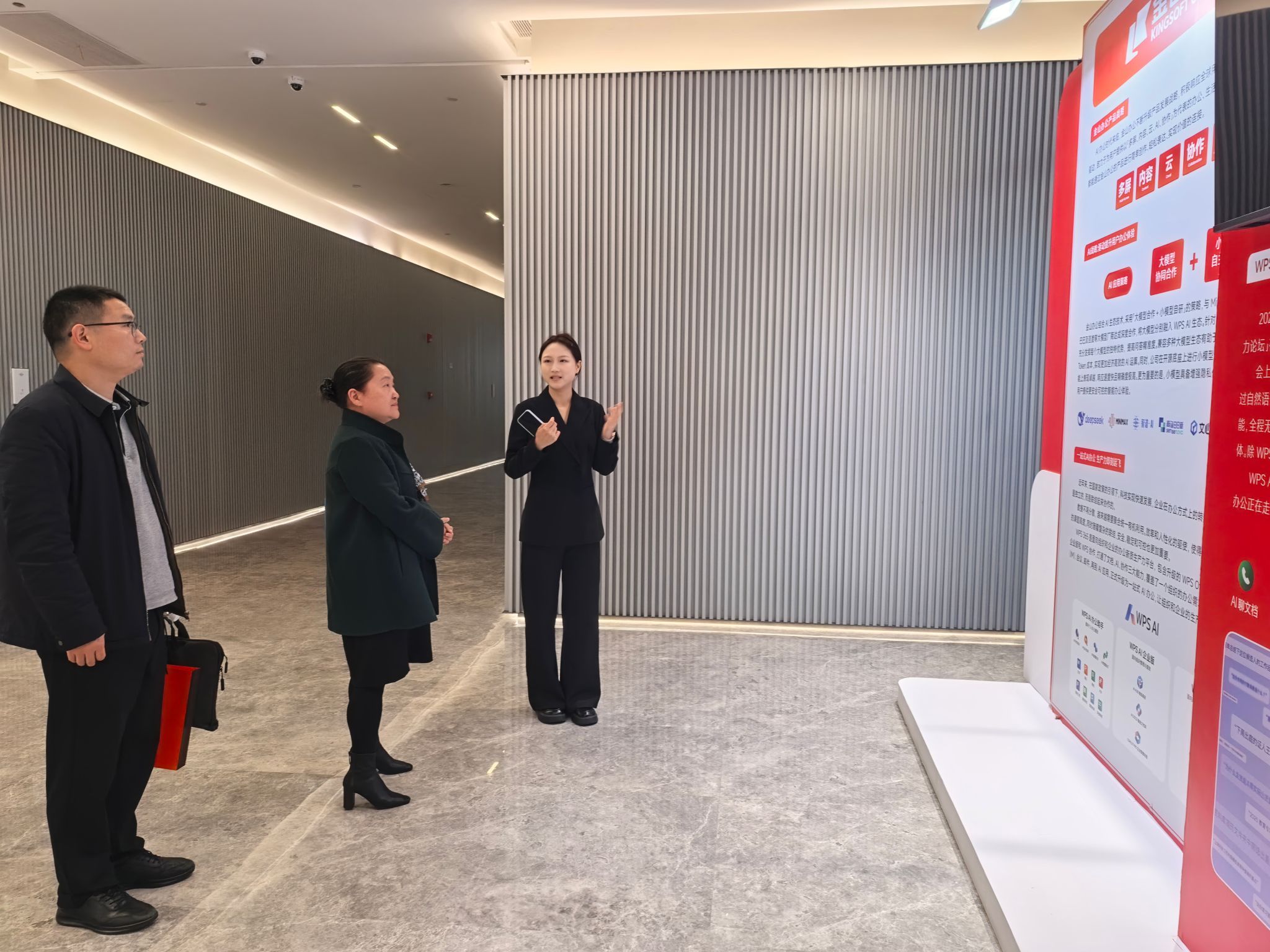 在金山软件相关负责人陪同下,胡新荣一行先后参观了企业展厅及核心研发中心,全面了解企业发展历程、战略布局、核心技术研发及人才需求导向,近距离感受企业在办公软件、云服务及信息安全领域的行业引领实力。