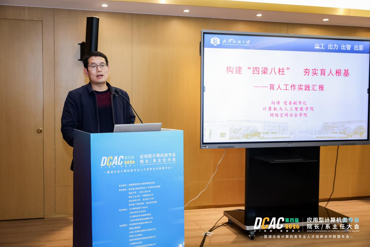 第四届应用型计算机类专业院长/系主任大会(DCAC2026)暨湖北省计算机类专业人才培养合作联盟年会于2026年3月20-22日在湖北省武汉市成功召开。本次大会由全国高等学校计算机教育研究会主办,湖北省计算机类专业人才培养合作联盟承办,《计算机教育》杂志社、《软件导刊》杂志社和中教奇观等单位协办。本次大会以“AI向新 谋变育人”为主题,来自全国200余所高校约500名专家学者参会。我校作为承办单位之一,积极参与大会各项关键环节。