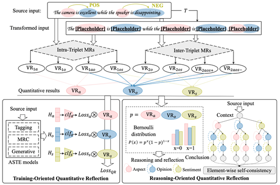 该工作面向自由文本环境下的心理分析需求,针对现有情感分析方法难以刻画多样化方面情感表达及其内在依赖关系的问题,提出了一种基于方面级情感三元组抽取的定量反思框架(MaRS)。该框架引入蜕变关系刻画情感元素在不同语境下的多样性特征,并通过定量反思机制,将语言约束信息融入模型训练与推理过程,提升模型对细粒度情感表达的建模能力。多个公开情感分析数据集与心理状态数据集上的实验结果表明,提出方法在F1指标上优于多种主流方法,并降低模型在复杂语义变化下的错误率,同时对大模型推理结果的稳定性也具有一定提升。