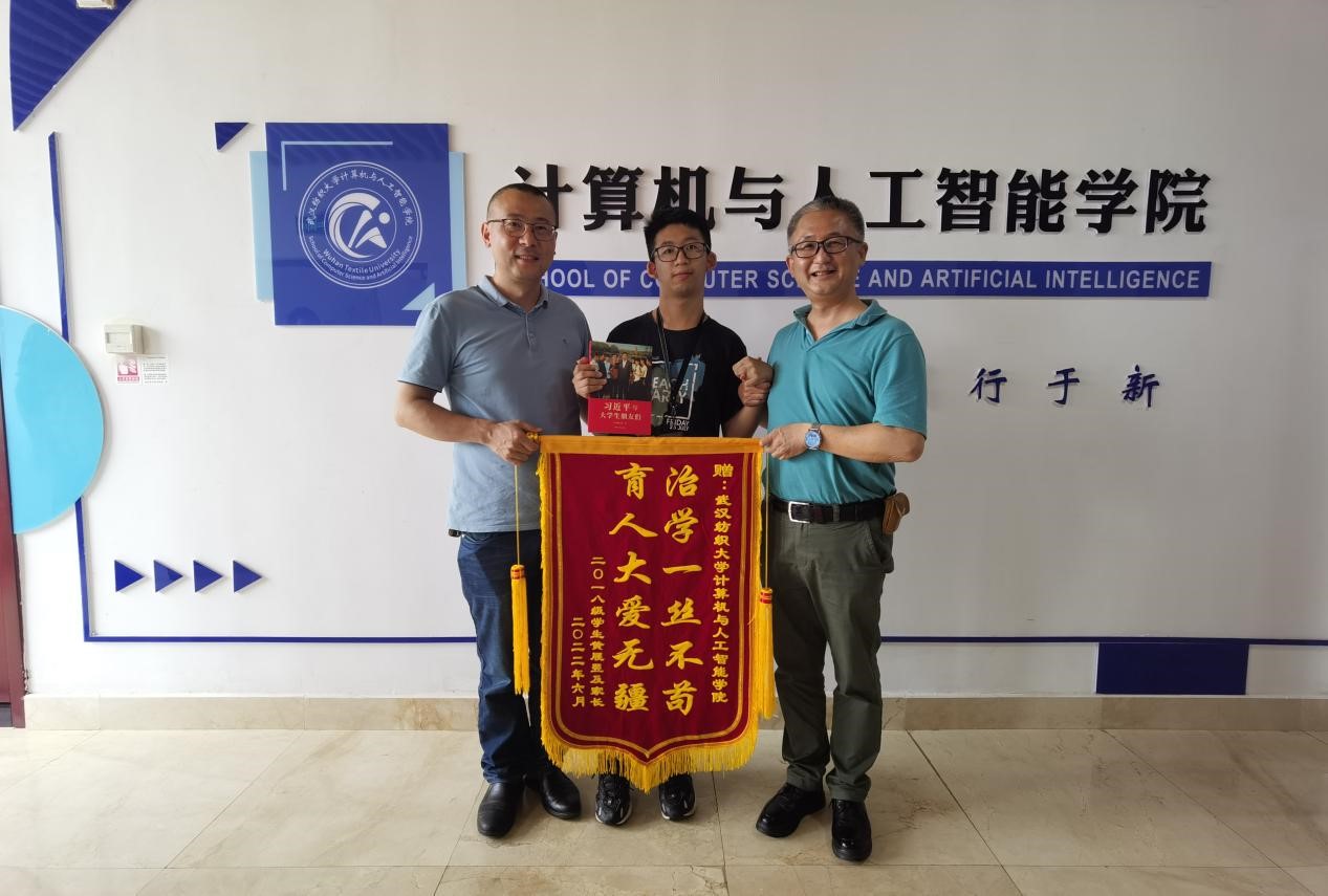 6月1日上午,在崇真楼(南楼)A4008会议室,开云kaiyun体育官方网站2022届软件工程专业毕业生黄展翌和他的父亲向学院赠送了写有“治学一丝不苟,育人大爱无疆”的锦旗,以此感谢学校、学院和师生们四年来对黄展翌的照顾与帮助。学工部副部长夏贤辉、校团委副书记侯庆,学院党委书记晏伟,副院长魏雄、彭涛,2018级辅导员廖龙、蔡文婷等参加赠送仪式。会议由学院党委副书记向涛主持。