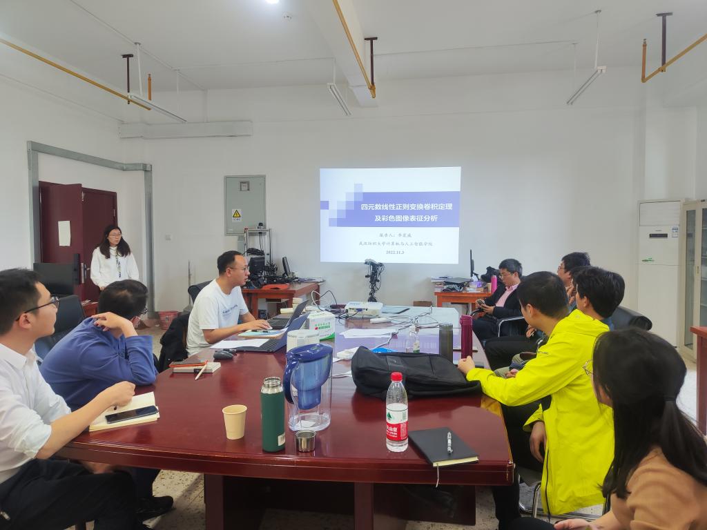 李震威老师作了题为“四元数线性正则变换卷积定理及彩色图像表征分析”的报告。首先,介绍了四元数线性正则变换的研究背景以及研究意义;其次,梳理了四元数线性正则变换的研究现状;然后,讨论了基于四元数线性正则变换的卷积定理并分析了其对彩色图像的表征;最后,探讨了四元数线性正则变换的进一步研究思路。