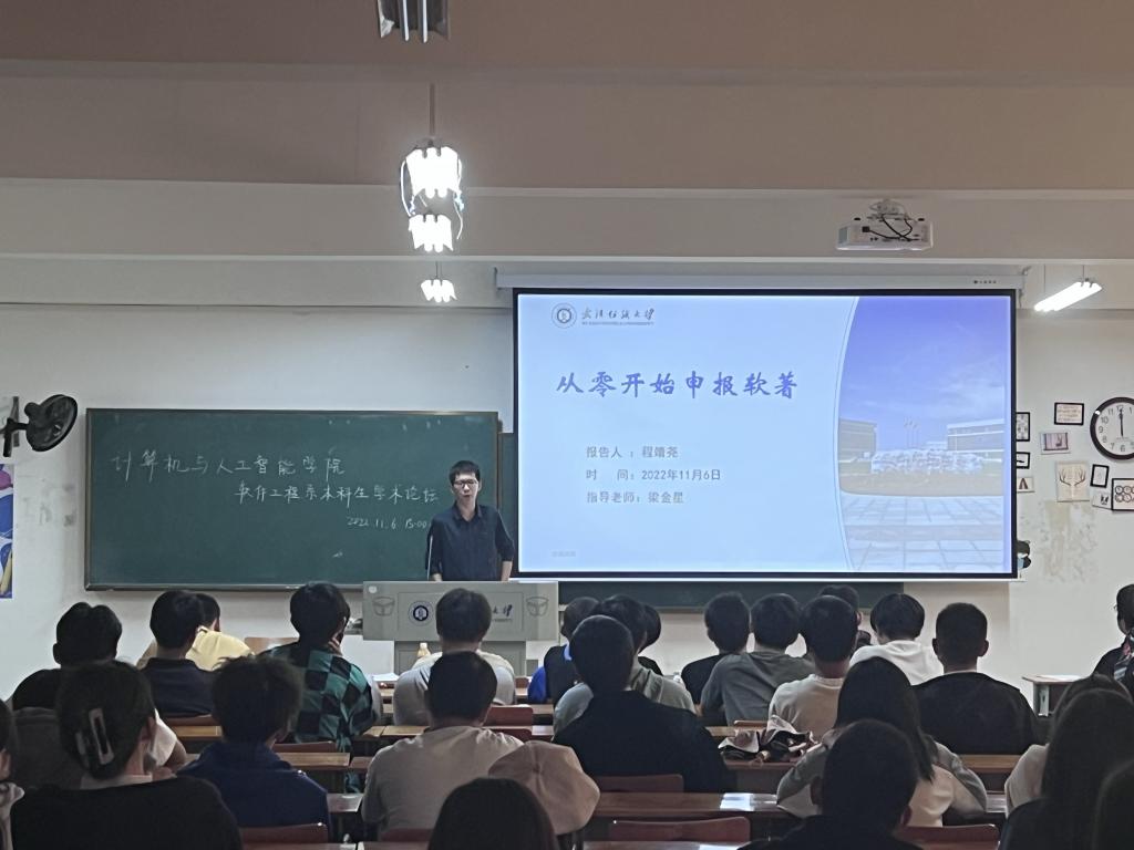 本次论坛邀请了2020级计算机系、软件工程系的两名同学分享自己的科研经验和科研成果。首先,软件工程12002班金欢向同学们分享了自己基于软件工程专业做的一项典型研究发表的论文——一个基于手机app用户评论的软件需求分类方法研究。她简要概括了其研究背景和意义,研究过程中有效评论数据的提取、分类、呈现等方法,并阐述了本研究的贡献及对未来工作的展望。软件工程12002班程靖尧向同学们分享了申请软著的经历经验,详细讲解了从零开始申报软著的具体流程及注意事项,他从软著的含义和申报所需材料两方面进行论述,指明申报的基础是先有自己编写的app,并鼓励同学们要及早准备,提前谋划。最后梁金星分别对两位同学的分享进行了总结,并解答了同学们的疑问。谢瑞清就近期开展的奖助学金的评定工作进行了讲解、总结,并借此机会进行了资助育人教育,鼓舞同学们心怀感恩、刻苦学习。