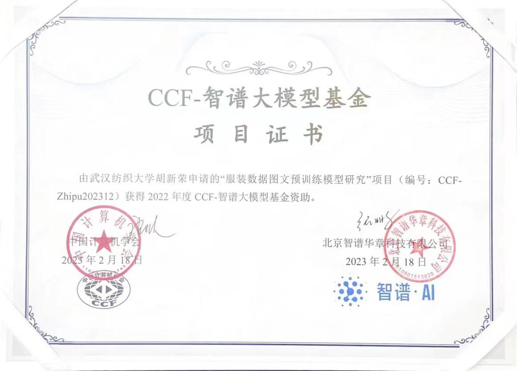 胡新荣教授获得2022 CCF-智谱大模型基金