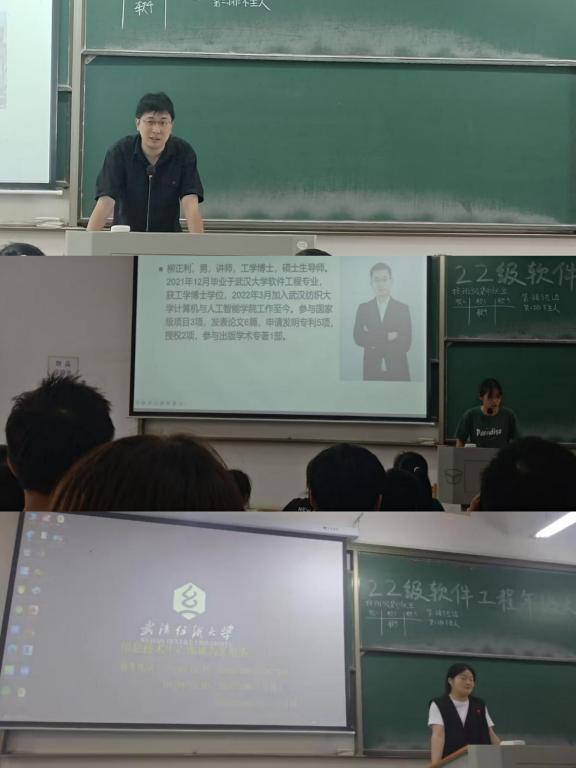 叶鹏首先介绍了软件工程专业本科生导师制的历史发展情况以及近年来本科生导师制的运行情况,特别强调了本科生导师从确定到毕业将全程指导,对帮助学生成长成才具有重要作用。随后,软件工程系老师们依次给同学们介绍自己的研究方向以及指导学生进行科研、竞赛和就业等情况,以便学生可以选择适合自己的导师。孔维广老师强调了编程的重要性和竞赛的重要性,介绍自己主要带学生参加一些程序比赛和网络安全比赛。梁金星老师强调在大学中应该注重全面发展,并介绍了他所带的学生在今年湖北省挑战杯中获特等奖的情况……老师们的精彩介绍赢得大家阵阵掌声。