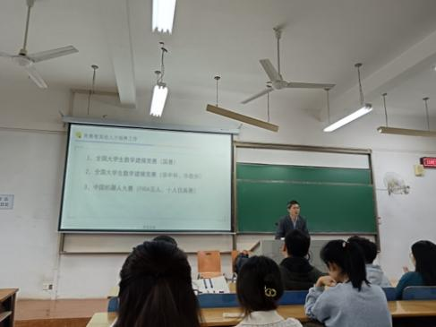 其中,潘雄建议同学们要打牢数学和计算机专业基础,训练较强的编程能力,刻苦认真、不躺平,并表示会为想要考研的同学提供专业上的指导。陈常念强调了编程的重要性,并介绍自己主要指导学生参加的CSP认证、ACM竞赛、蓝桥杯C/C++组等竞赛情况。黄晋强调了本科生学习的四个重要方面:争取绩点3.0以上、通过英语四六级考试、参加学科竞赛、参加科研,并介绍自己主要负责组织华为ICT竞赛,鼓励全体同学积极参加。王兆静老师提出以赛促学的观点,介绍自己主要负责大创、泰迪杯数据挖掘等竞赛。杨华利介绍自己负责的是大学生创新创业项目,以及自己指导学生竞赛和考研的经历。