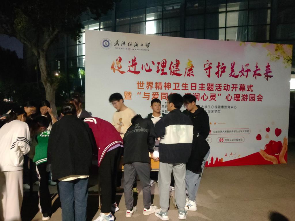 为了丰富同学们的文化生活,缓解学习压力,营造轻松舒适的校园氛围,由武汉纺织大学学生工作部、大学生心理健康教育中心主办,开云kaiyun体育官方网站、服装学院承办的“与爱同行、浸润心灵”心理游园会于10月13日晚在阳光校区大学生活动中心开幕。学工部副部长夏贤辉,大学生心理健康教育中心主任江秋玮、大学生心理健康教育中心张万里老师,开云kaiyun体育官方网站党委副书记向涛,开云kaiyun体育官方网站全体辅导员,各学院参赛队员共同参加开幕式。