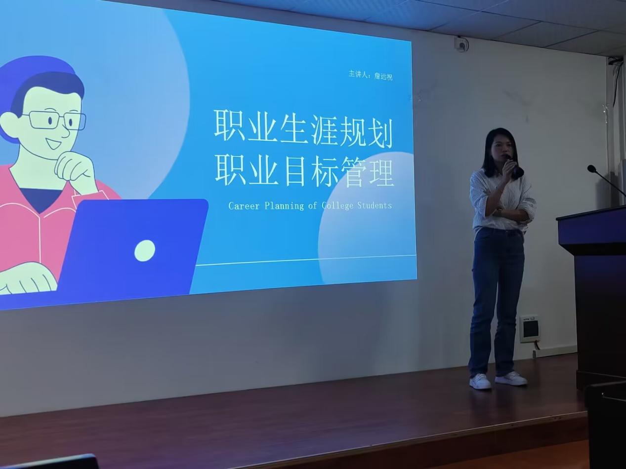 詹远祝以“职业生涯规划·职业目标管理”为题,向同学们讲解了如何有效地进行未来职业规划。她总结了四个关键点:“以终为始、目标拆解、知行合一、保持学习”,并结合自身经历为同学们逐一讲解。以“你想成为什么样的人”为起点,教会同学们如何将抽象的职业目标具体化,从模糊的概念转化为明确的指标。她强调了设定长期目标的重要性,并且鼓励同学们将目标分解为可行的短期和中期目标,以便更好地实现最终的职业愿景。鼓励同学们要不断努力提升自己的专业技能、管理能力和自我管理能力,以应对职业生涯中的挑战和变化。