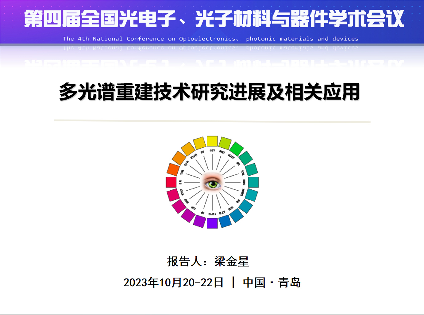 2023年10月20-22日,2023年第四届全国光电子、光子材料与器件学术会议在青岛顺利召开,大会共设微电子科学与工程、信息光子学及应用、光子学系统工程等11个专题论坛,开云kaiyun体育官方网站院长胡新荣教授受邀担任“光子学系统工程”专题论坛委员,我院青年教师梁金星博士以“多光谱重建技术研究进展及相关应用”为题,受邀作该论坛专题报告,重点汇报了近期团队围绕开放光照环境下的多光谱重建技术的研究进展。