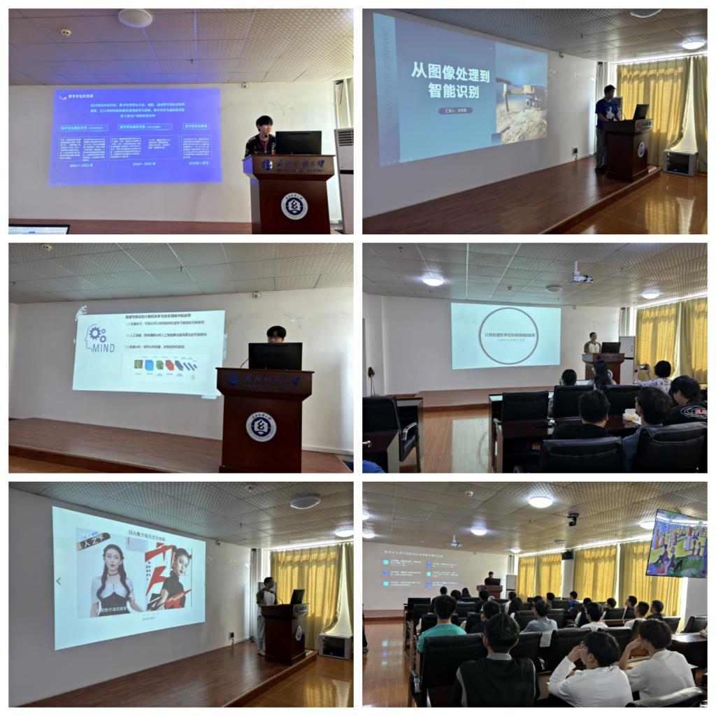 分享会中,刘恒同学介绍了分布式版本管理系统Git的基本概念、基本操作、分支管理、远程仓库、团队协作等基础知识,强调了团结协作的重要性,并分享了自己在合作方面的个人经验。李紫豪同学以几款热门游戏为例,探索图形学是如何完成艺术渲染的,从游戏开发的角度来剖析,游戏分为表层次和里层次,其中表层次包含剧情、音乐、美术以及一些氛围渲染手段等。洪淞望同学介绍在科技发展、时代进步的同时,图像识别这种技术将会拥有更广阔的的使用前景,能够在医疗领域、信息搜集领域、质量控制领域、安全检查领域中发挥巨大的作用,主要从手势识别到人脸识别再到肢体识别,分享了他的学习和理解。王磊同学介绍了从数据可视化、图形编程可视化、用户界面设计等角度阐述了可视化技术的内容。王茂名同学介绍了计算机图形学在影视领域中的应用,分析计算机图形学在影视领域应用现状,同时展示计算机图形学在电影和动画中的创新和应用。王子龙同学介绍了数字孪生技术以其精确的仿真和强大的数据分析,让我们可以如同魔法般重新构建、模拟和预测现实。