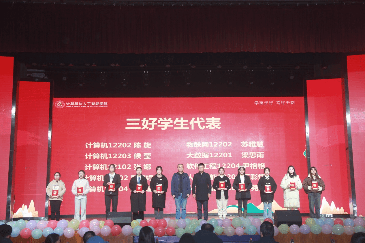 12月28日晚,开云kaiyun体育官方网站在大学生活动中心演播厅举办了以“一见倾‘新’,‘计’梦未来”为主题的先进集体和优秀学生表彰大会暨迎新晚会。校党委常委、副校长冯军,学工部、校团委、教务处、招就处负责人,友好企业代表(恒生、光庭、噢易云、中软、讯方等),全体院领导、教职工,本科生、研究生等1000余人参与了本次活动。
