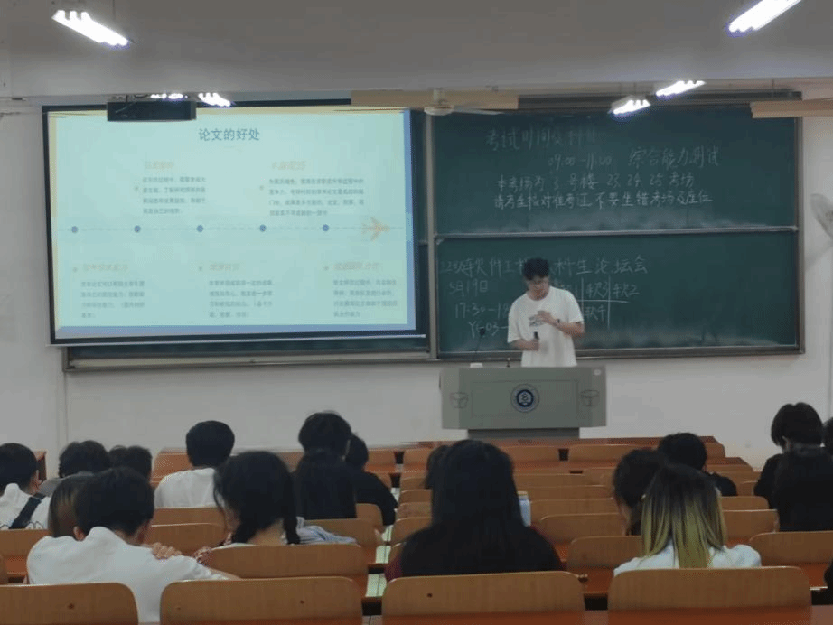 除了成功经验的分享,他也讲述了在研究过程中所遇到的种种困难。他鼓励大家多向学长、老师请教,提高自己的科研素养。他还强调了科学素养的重要性,并指出规范化操作(如文献查阅、图表绘制、排版、翻译等)在论文写作中的关键地位。他总结了几点心得:明确论文框架、与学长学姐和老师沟通交流、耐心琢磨实验环境配置、明确团队分工并加强交流协作。他表示撰写论文不仅对学术研究有重要意义,还对个人发展产生积极影响,可以丰富个人简历、积累项目经历、增强自信心和团队协作能力,为将来的科研道路奠定坚实基础。