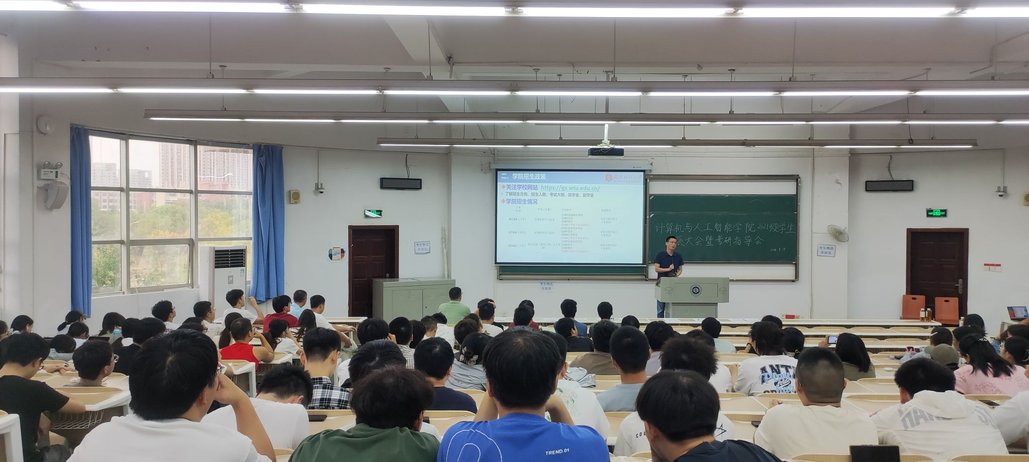 副院长彭涛详细介绍了学院研究生招生政策、近年来的招生情况、招生方向和师资团队。他分析了当前考研的现状,并提出了相应的对策。他告诫学生们要合理定位,选择最适合自己的道路,并强调考研需要投入大量的时间和精力。还分析了学院计算机考研改考408科目的挑战与机遇,鼓励学生们把握机会,报考本校研究生。