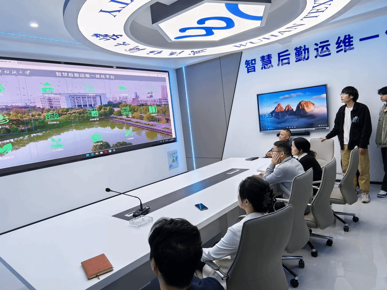 会后,程彩君带领人工智能12302班全体学生参观了智能后勤运营一体化平台。该智慧平台涵盖食堂管理、绿化管理、用电能耗、用水能耗等方面。在食堂管理中,后勤工作人员可以清晰观察到食堂工作人员对食材的处理过程、餐具的消毒过程,保障同学们的饮食安全;在绿化管理中,可以清晰看到纺大校园各个角落中的植被覆盖情况,以及对植被出现的问题及时做出绿植养护工作;在用电能耗中,可以及时了解到各个教学楼的用电情况,如发现无人教室但空调未关情况及时通过远程控制关闭空调,节约能耗。
