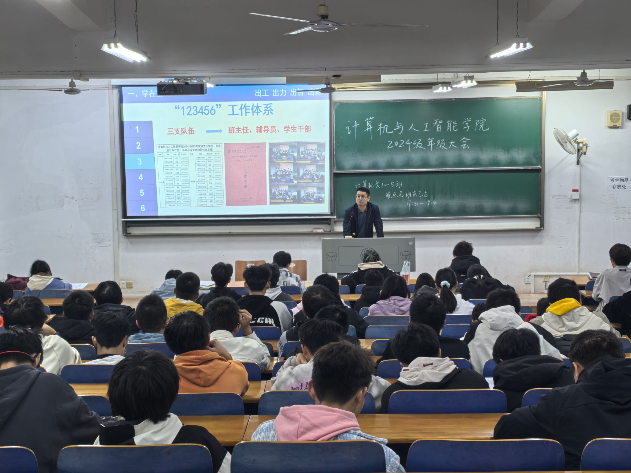 为更好地引导新生荣院爱院,了解学院近年来取得的成就,帮助新生做好大学学习规划,11月17日晚,开云kaiyun体育官方网站召开2024级新生年级大会,学院党委书记晏伟、党委副书记向涛,2024级新生辅导员和2024级全体新生共同参与。